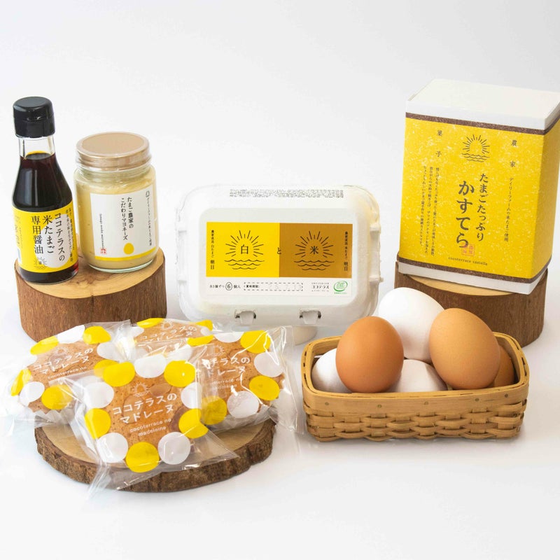 当店人気のカステラやマドレーヌに加え、卵農家こだわりの逸品たちを一つにまとめた特別なギフトセットです。