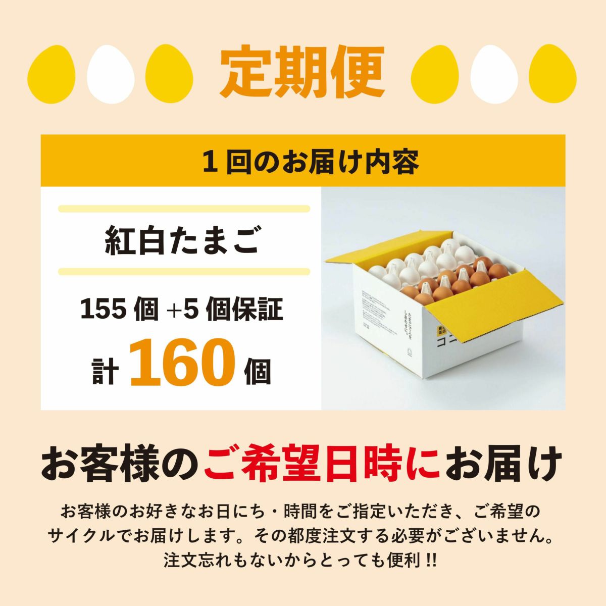 他の画像を見る 常温便 定期販売 お好きな日程選択可能 たまご農家自慢の2種。両方食べて頂きたい贅沢セット。 【定期便】紅白たまご 155個 + 5個保証(計160個) 1回あたり ¥ 6,900 税込 詳細を見る