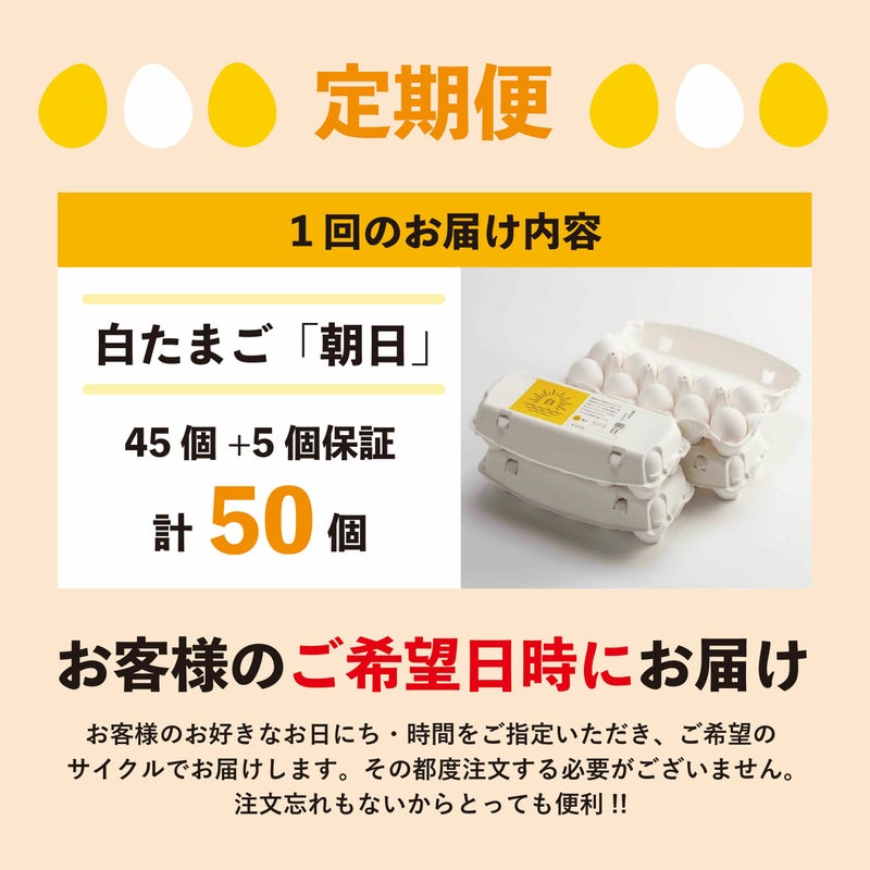 心と身体に栄養満点。毎日食べたい万能たまご。 【定期便】朝日(白たまご)45個+5個保証(計50個)