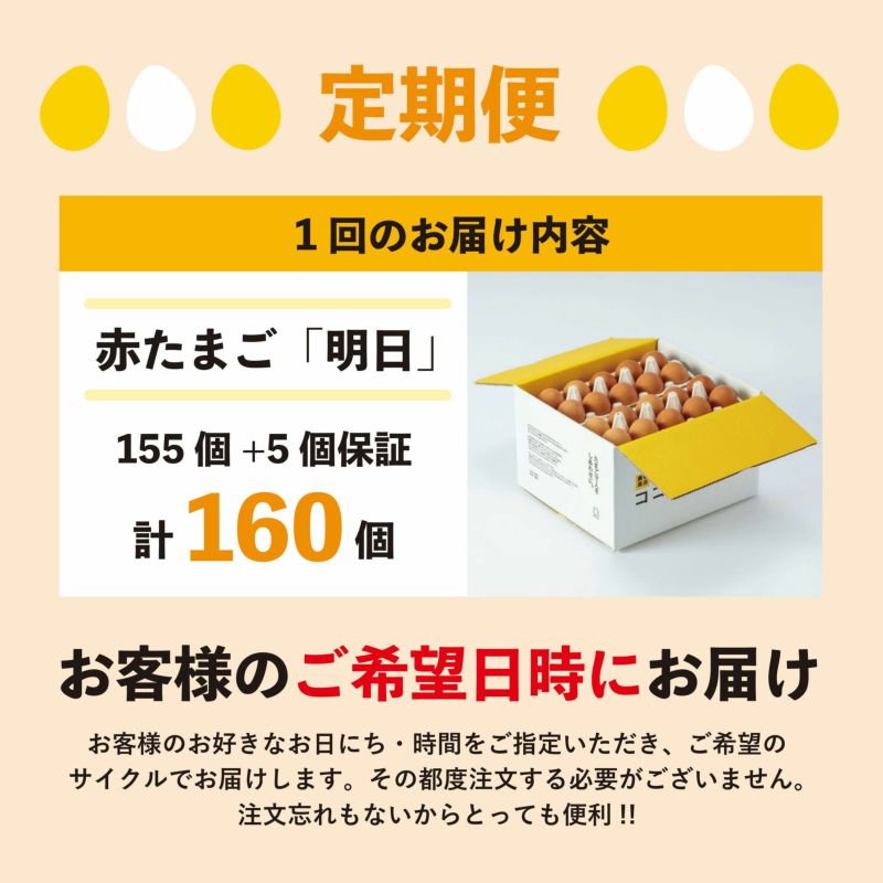 輝く濃厚卵黄の強いコク。農家自慢の絶品たまごはぜひ「生」で。 【定期便】明日(赤たまご)155個+5個保証(計160個)