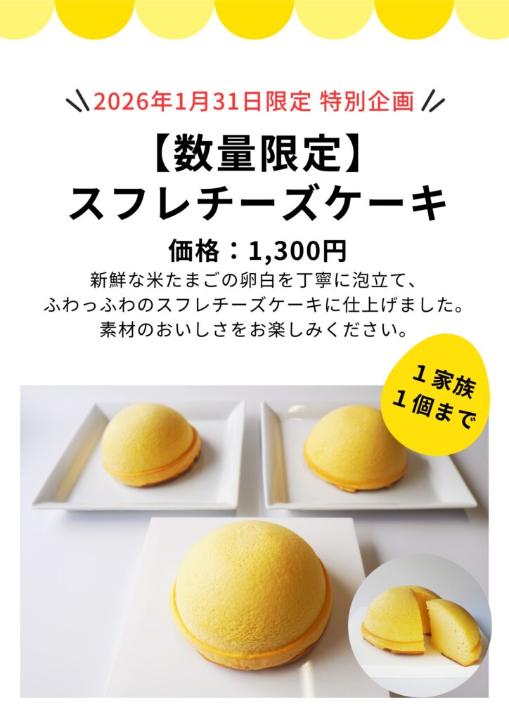 【1/31にスフレチーズケーキを再販売🍰】