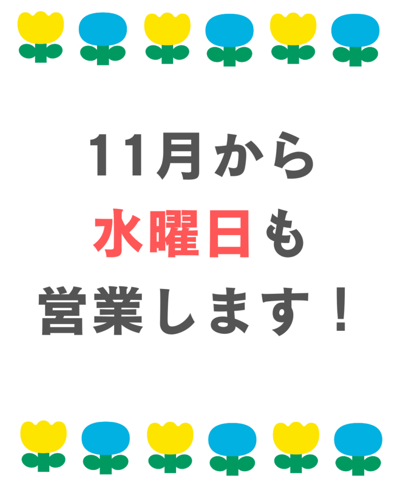11月から水曜日も営業しております!